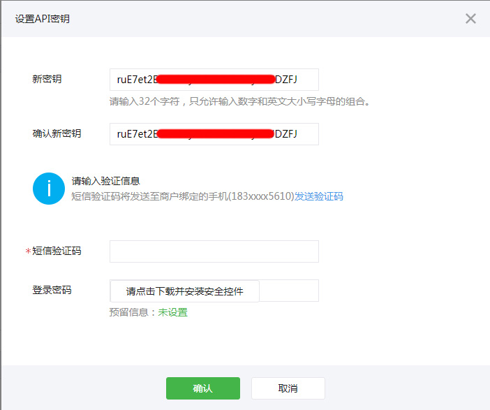 7. 填写并确认一个32位的新密钥,可以去 这里 在线生成一个32位的随机字符。